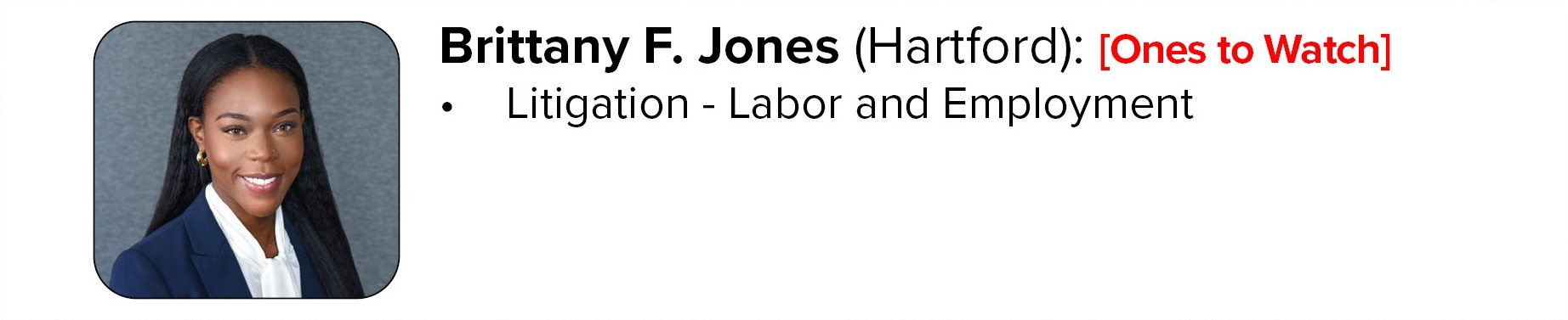 Only a single lawyer in each practice area and community is honored with a “Lawyer of the Year” award. “Ones to Watch” honorees are awarded to attorneys who are earlier in their careers and have shown outstanding professional excellence.